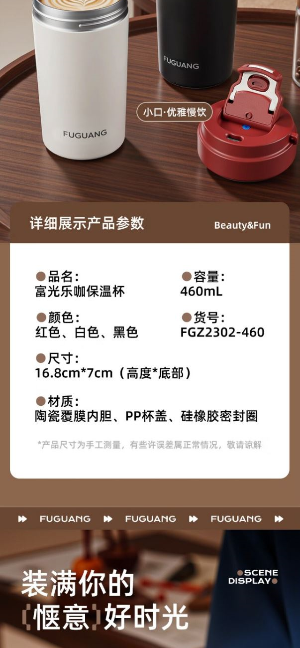富光乐咖晶瓷真空杯FGZ2302-460