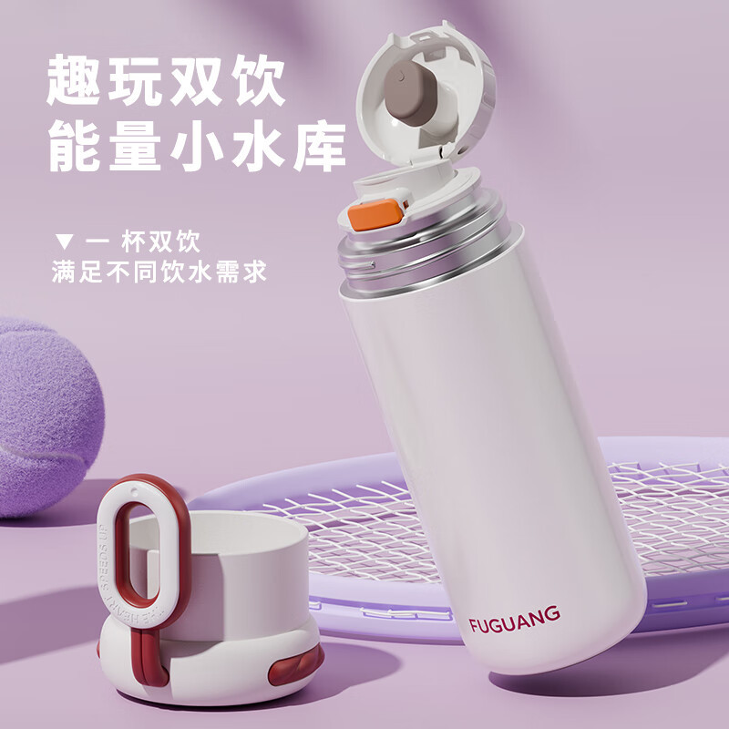 颜色:白色 粉色 紫色 绿色 容量:450ml 尺寸:68*200mm 材质:316奥氏体不锈钢内胆,无尾真空超长保温。 超轻杯身设计,独特加宽硅胶提环设计,随身携带更方便。 一杯双饮,杯盖独特分享盖设计,休闲运动两不误。 包装:单瓦盒