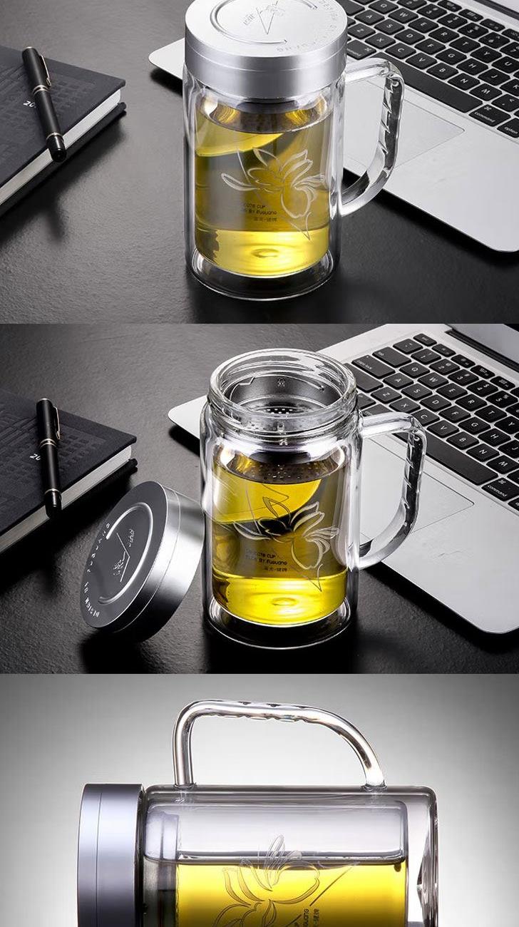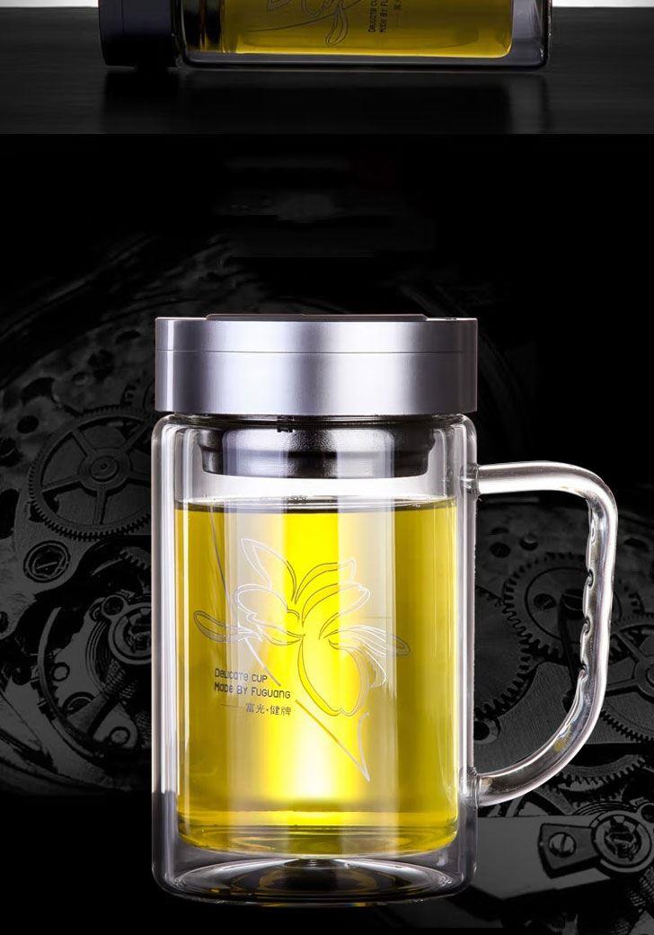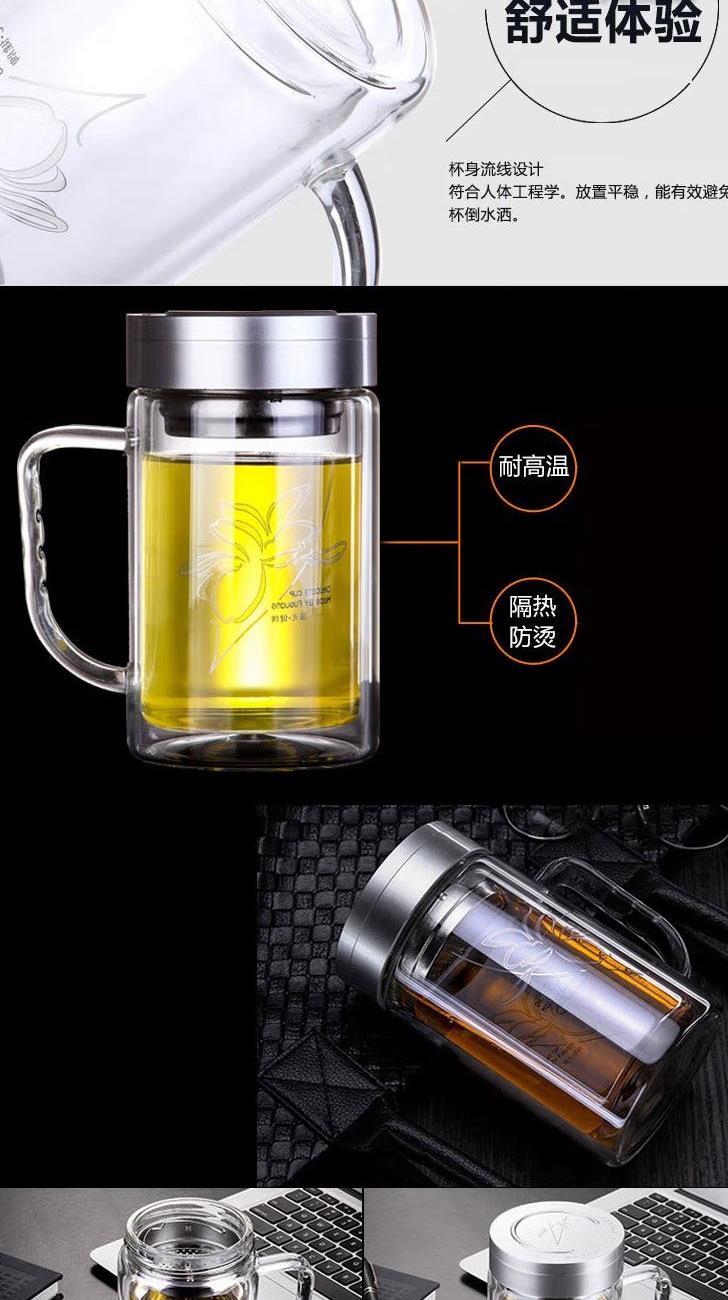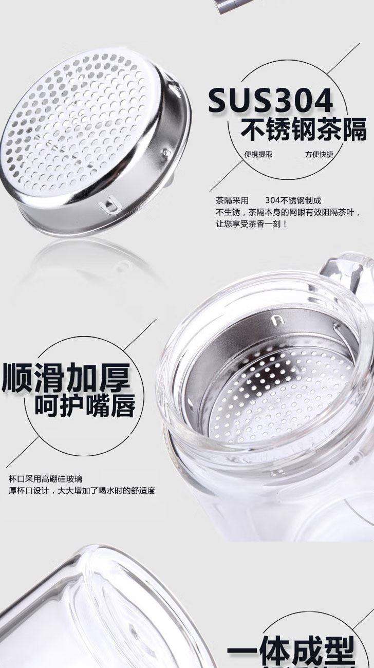 容量:320ml 重量:385g 颜色:黑色 银色 尺寸:72*142mm 材质:304不锈钢滤网,高硼硅玻璃材质,杯身通透精致,双层隔热,防烫不易碎。 加大304不锈钢滤网你爱的茶饮全部都能装。 包装:单瓦盒