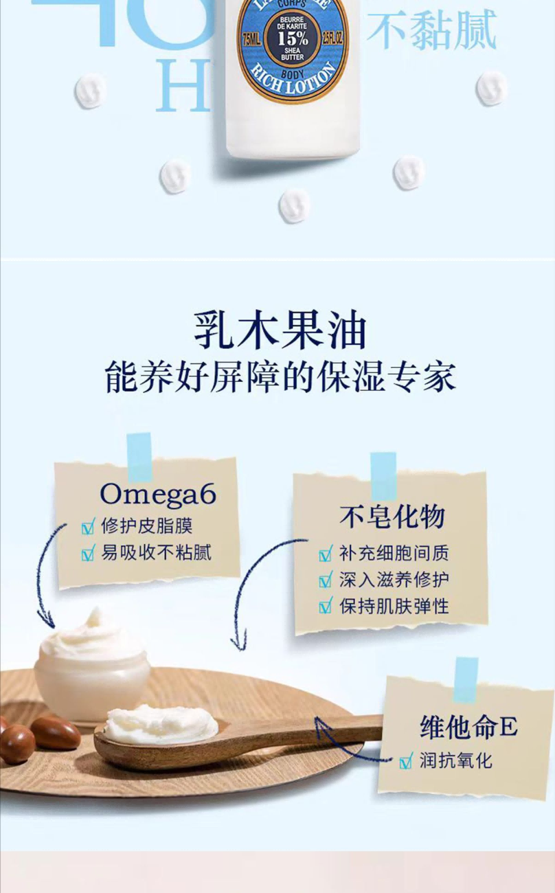 2.欧舒丹乳木果滋润身体乳75ml*1(香型随机)