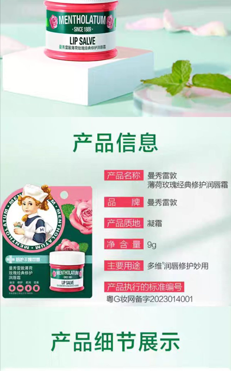 1.曼秀雷敦保湿滋润薄荷玫瑰唇霜9g*1(香型随机)