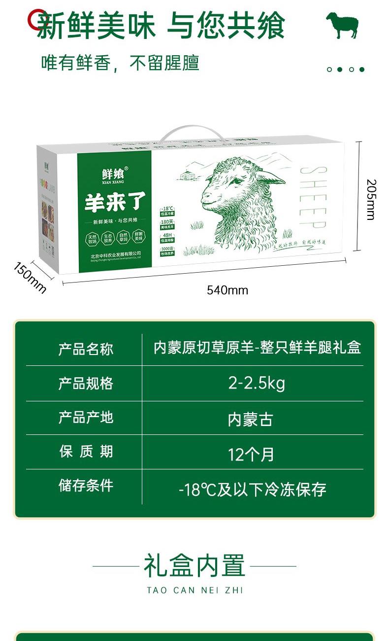 鲜飨内蒙原切草原羊-整只鲜羊腿礼盒2-2.5kg
